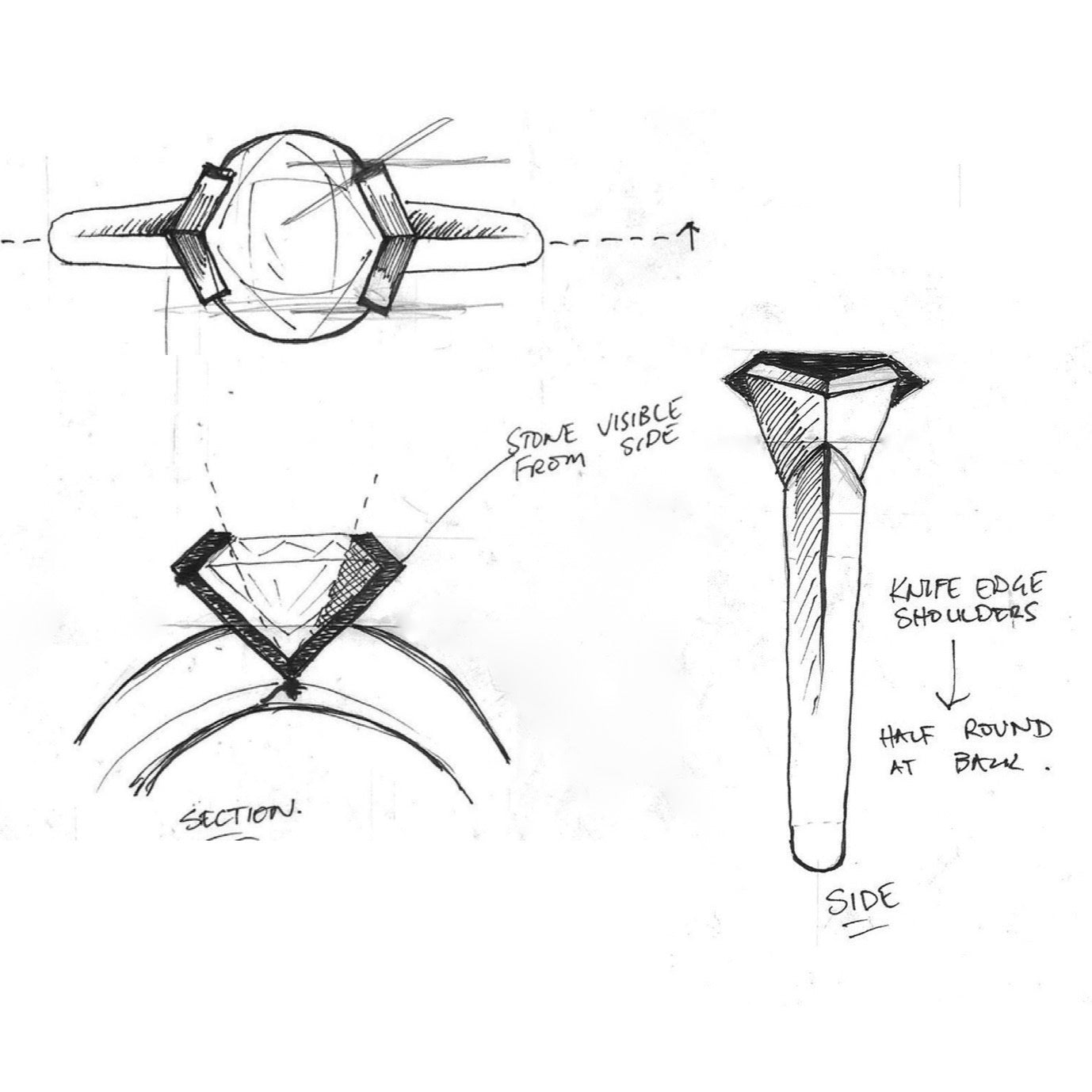 By request I can sketch your ideas to help you visualise the piece — and if you want to go further, 3D rendering is available as an added extra to really bring it to life.